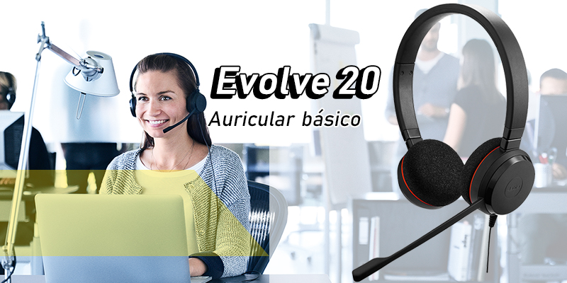 Auriculares Jabra Evolve 20 son unos auriculares profesionales diseñados específicamente para mejorar las conversaciones. Cancelación de ruido pasiva y moderada.